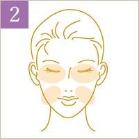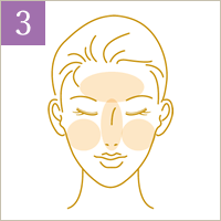 その後、頬や額など広い部分にのせます。手の甲で下からなでて、サラッとしていたら完成。