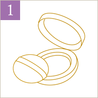 パフでパウダーを適量とって、軽くもんで均一にします。