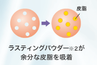 微細な穴が開いた「ラスティングパウダー※2」が余分な皮脂を吸着し、メイク崩れを防止。