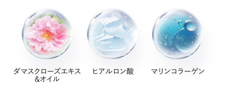 タルク、オクテニルコハク酸デンプンAl、窒化ホウ素、酸化チタン、(フッ化/水酸化/酸化)/(Mg/K/ケイ素)、ミリスチン酸Mg、合成フルオロフロゴパイト、シリカ、トリ(カプリル酸/カプリン酸)グリセリル、ヒアルロン酸、加水分解コラーゲン、ダマスクバラ花油、ダマスクバラ花水、ナイロン-12、1,2-ヘキサンジオール、ダイマージリノール酸(フィトステリル/イソステアリル/セチル/ステアリル/ベヘニル)、水酸化Al、ヒドロキシアパタイト、トリエトキシカプリリルシラン、ステアリン酸、ジメチコン、メチコン、ハイドロゲンジメチコン、ダイマージリノール酸ダイマージリノレイル、水添レシチン、ジフェニルシロキシフェニルトリメチコン、トリエトキシシリルエチルポリジメチルシロキシエチルヘキシルジメチコン、水、香料、酸化鉄、グンジョウ