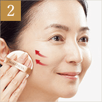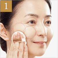 パフのスポンジ部分に1~2回押しつけ、スタンプを押すように「ぽんぽん」とやさしくお肌にのせます。