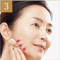 ファンデーションをのせた部分とお肌の境目にパフを「スーッ」とやさしくすべらせ、なじませていきます。