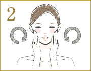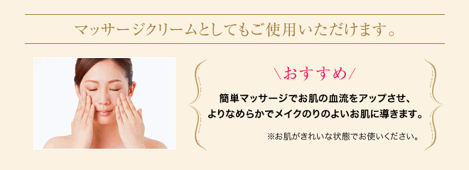 顔全体になじませ、指先の感触がフッと軽くなるまで優しくなじませてください。