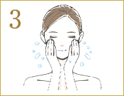 指先の感触が軽くなりはじめたら、さらによくなじませ、水やぬるま湯で洗い流すかティッシュペーパーなどで軽くふきとってください。そのあと洗顔料などで洗顔してください。